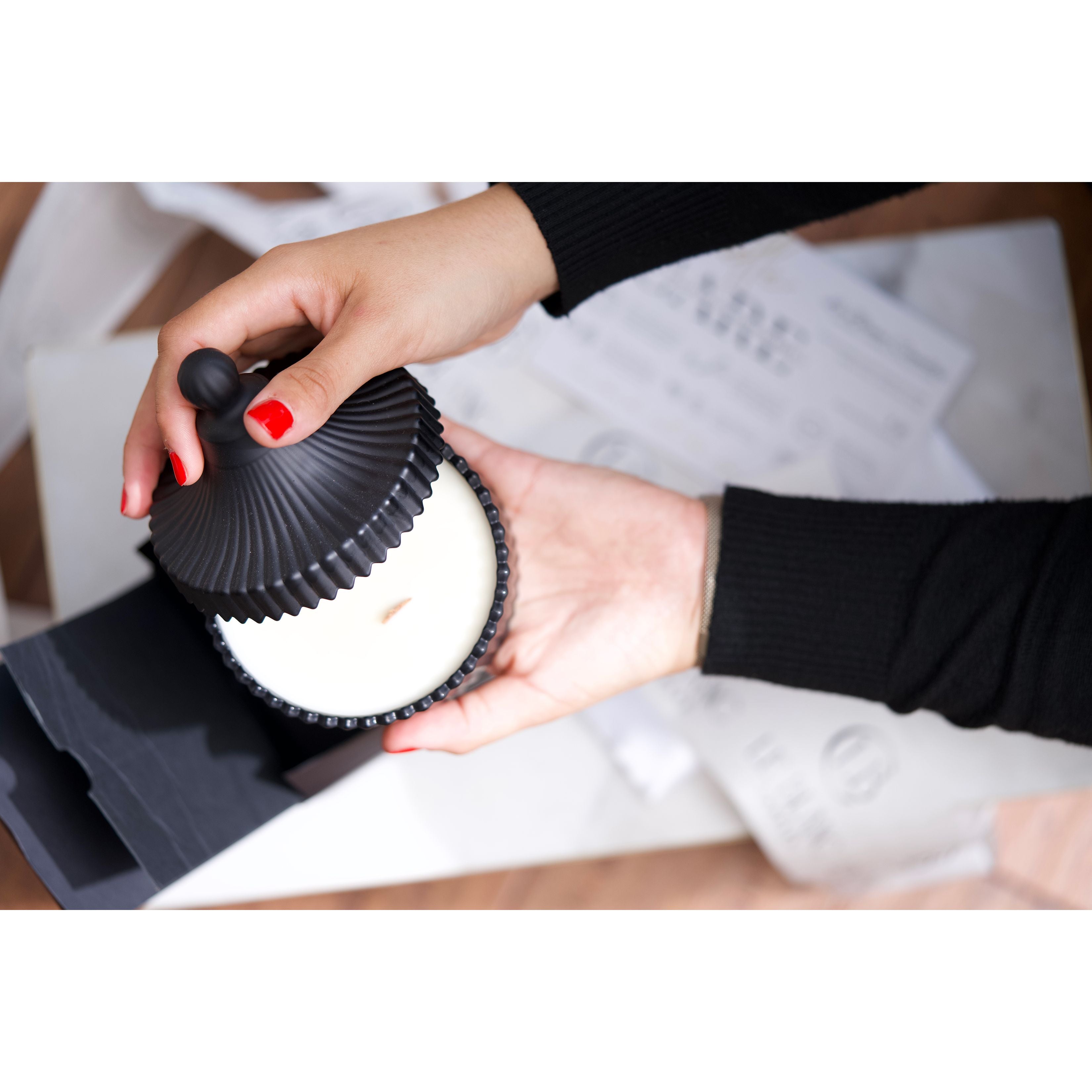 Each of our luxury candles is crafted by hand using a premium blend of coconut soy wax, chosen not only for its eco-friendliness but also for its ability to burn cleanly and evenly. As you light our candles, the natural wood wick comes alive with a delicate crackling sound, adding a sensory layer that enhances any room with a warm, cozy ambiance.